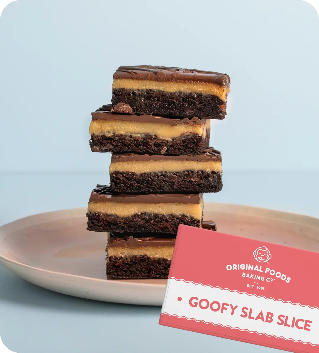 Check out our Goofy Slab Slice and Brownie pre-cut range here. Brownie Slabs can be ordered online and picked up from our Christchurch shop.