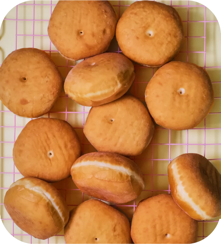 Baked fresh, then frozen, these donuts are a cult classic and ready for thawing, frying and serving.