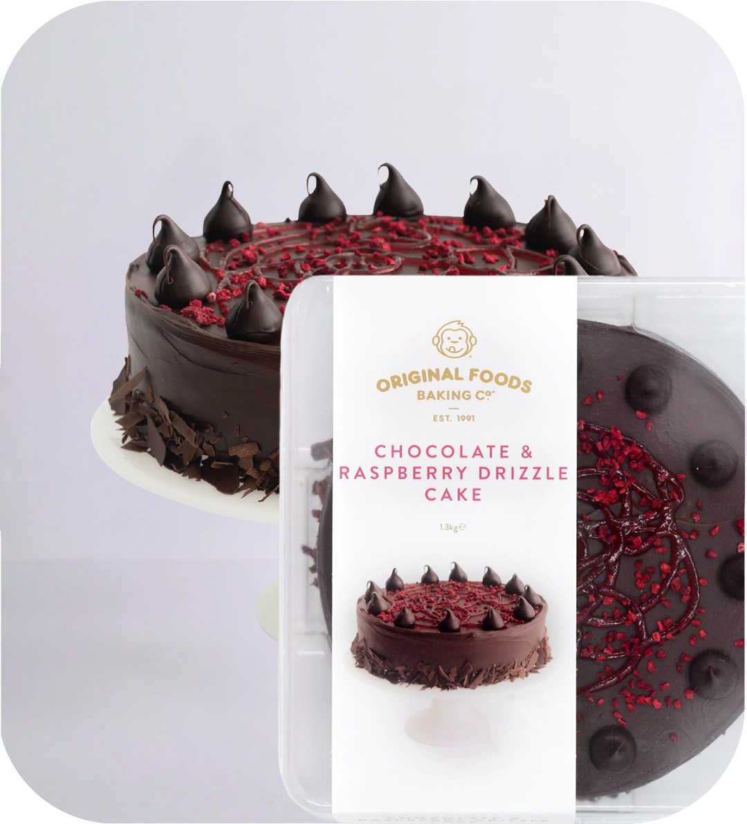 Love at first sight, and first bite! Delicious, rich chocolate cake topped with chocolate ganache and finished with raspberry drizzle, choc flake and drops. Perfect for any occasion.
