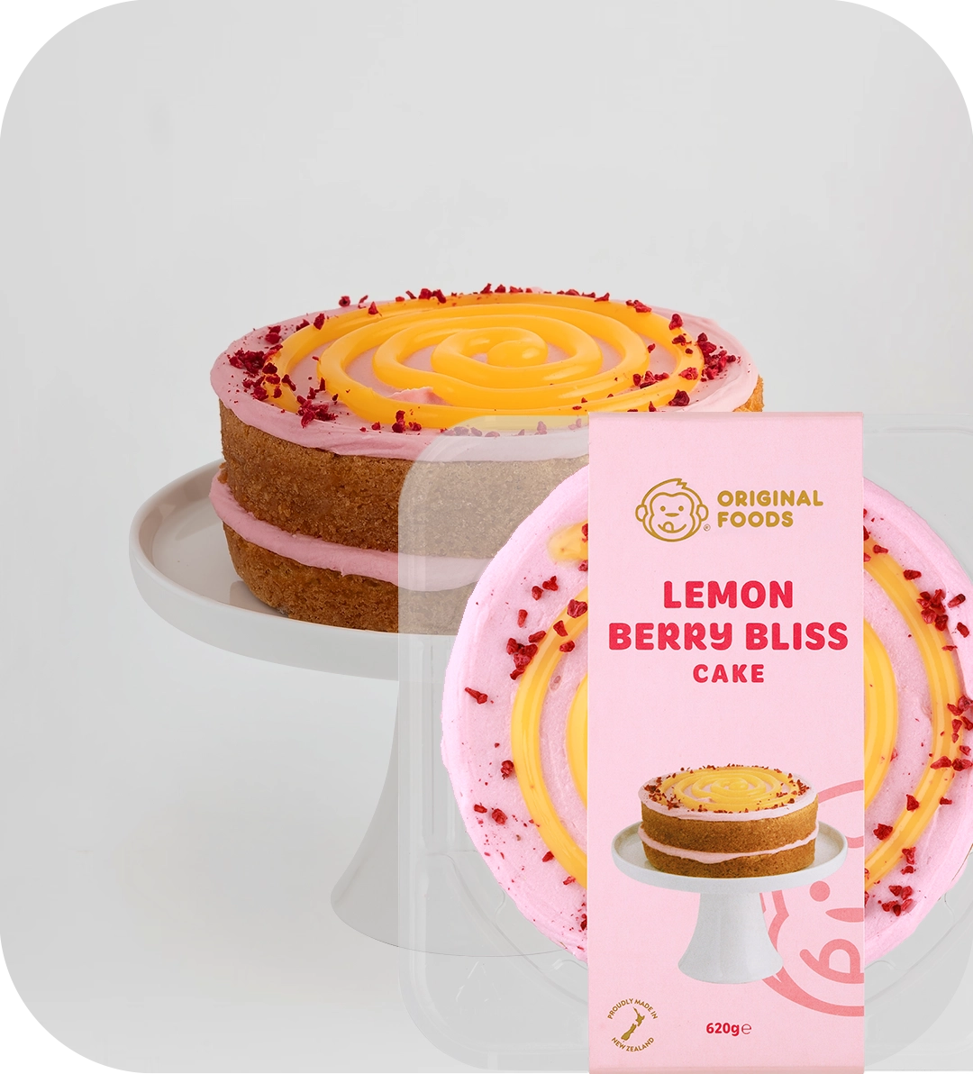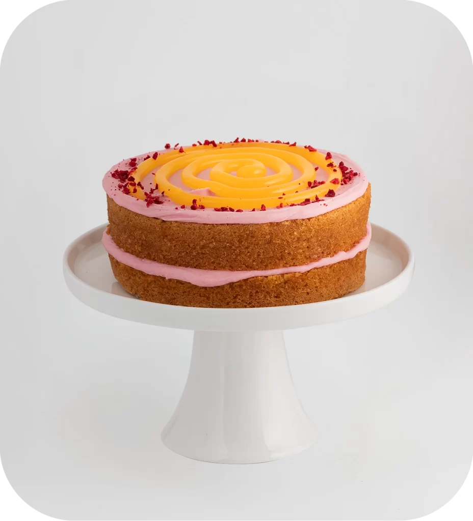 A burst of citrus and berry bliss in every bite! Irresistibly moist lemon cake layered with pink cream cheese icing, finished with a swirl of lemon curd and a sprinkle of freeze-dried raspberries.
