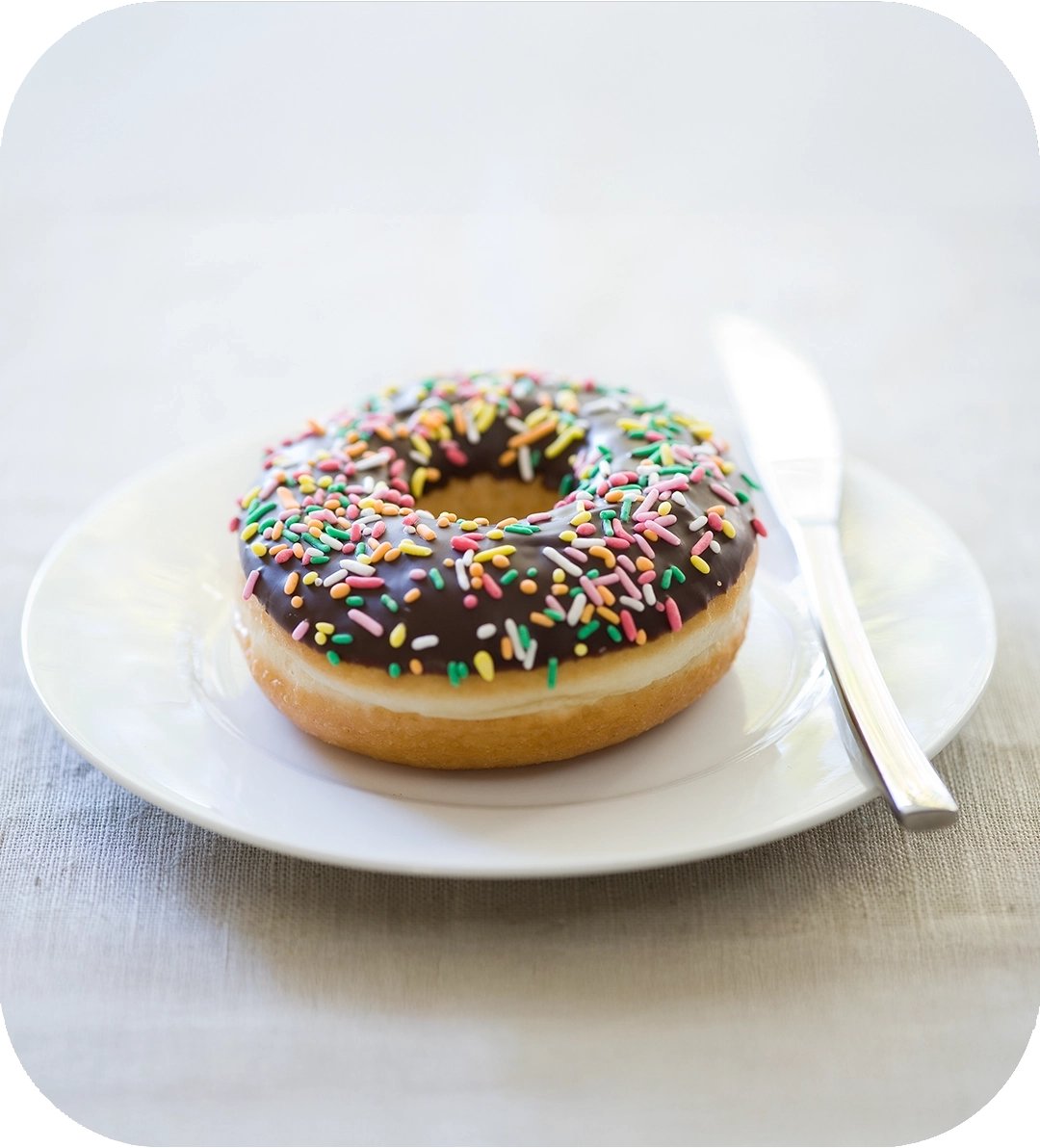Scientific fact #1: things taste better with sprinkles. This large, soft, yeast ring donut is dipped in delicious choc icing and sprinkles.