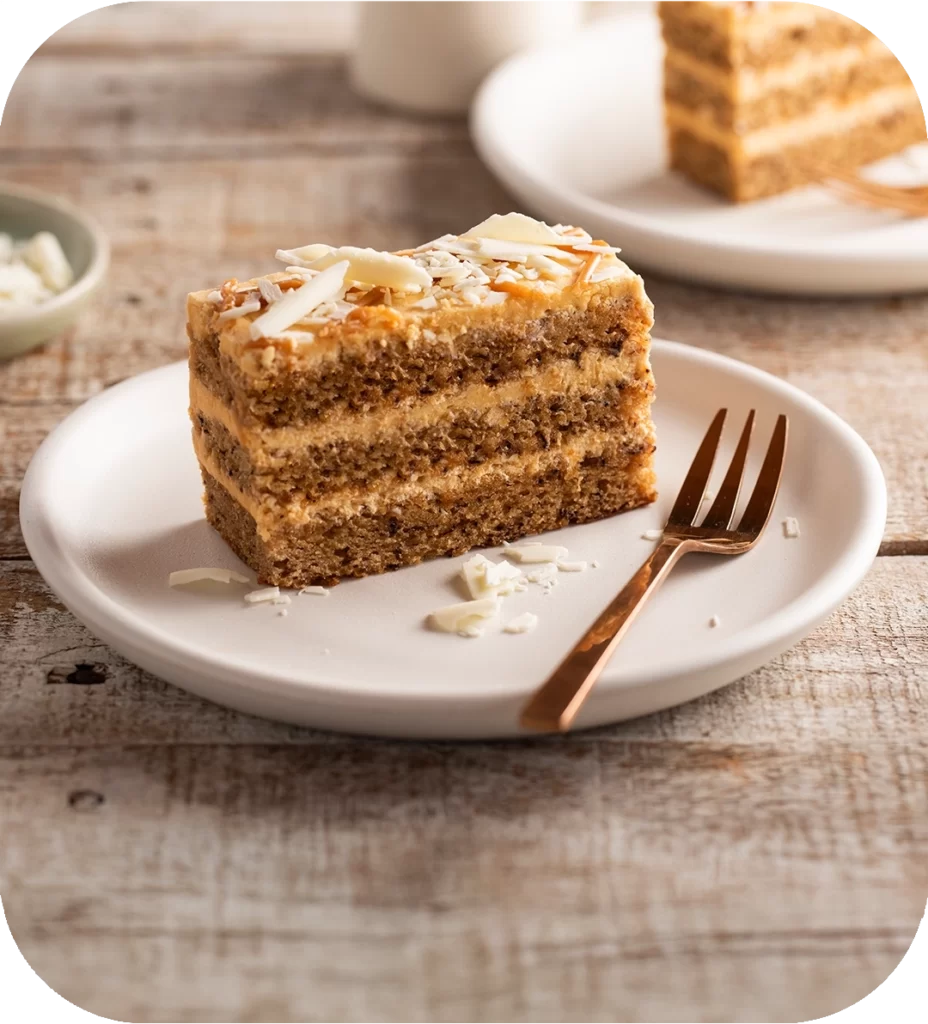 Light cake made with fresh bananas, generously layered with a rich and creamy caramel cream cheese icing. A drizzle of caramel sauce and a sprinkle of white choc flake completes this indulgent treat.