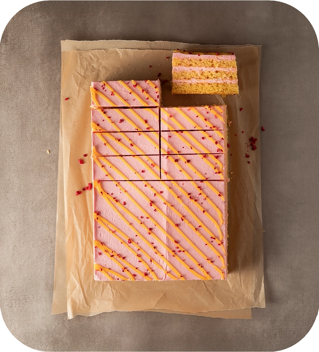 Crafted to impress, our layered slab cakes feature decadent layers of cake, icing, and stunning drizzles and toppings. Perfect for when you’re looking to up your cake game!