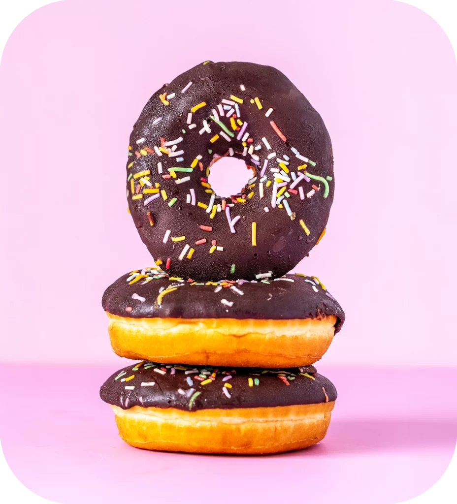 Guaranteed chocolatey deliciousness! Individually wrapped, soft, yeast-raised large ring donut dipped in chocolate icing and topped with multi-coloured sprinkles.